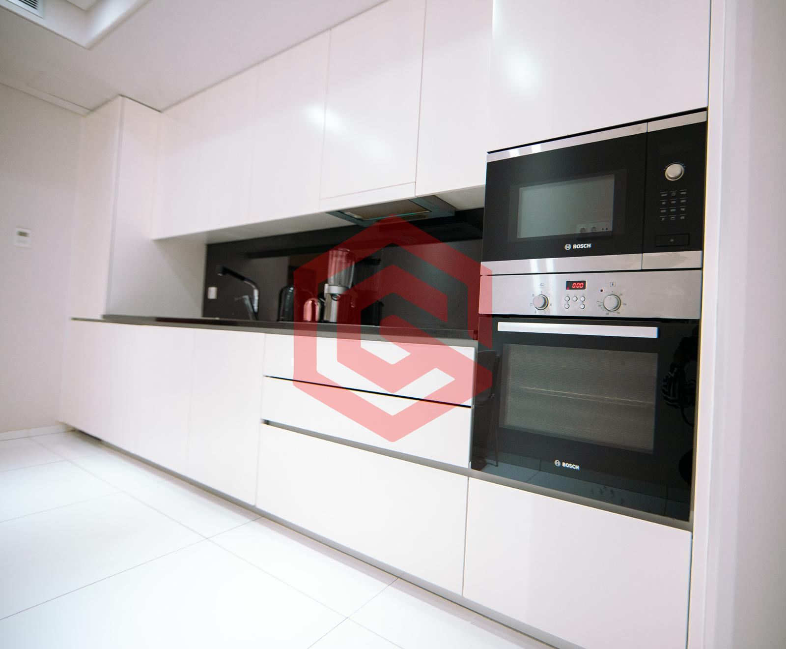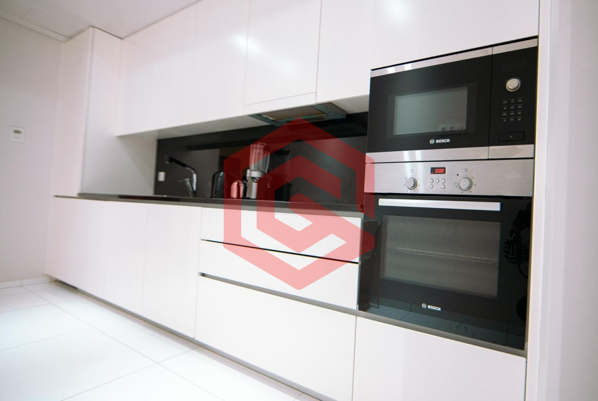 – Cozinha equipada (com armários embutidos, frigorífico, fogão, forno elétrico, micro-ondas, máquina de lavar roupa e máquina de lavar louça) gás canalizado.