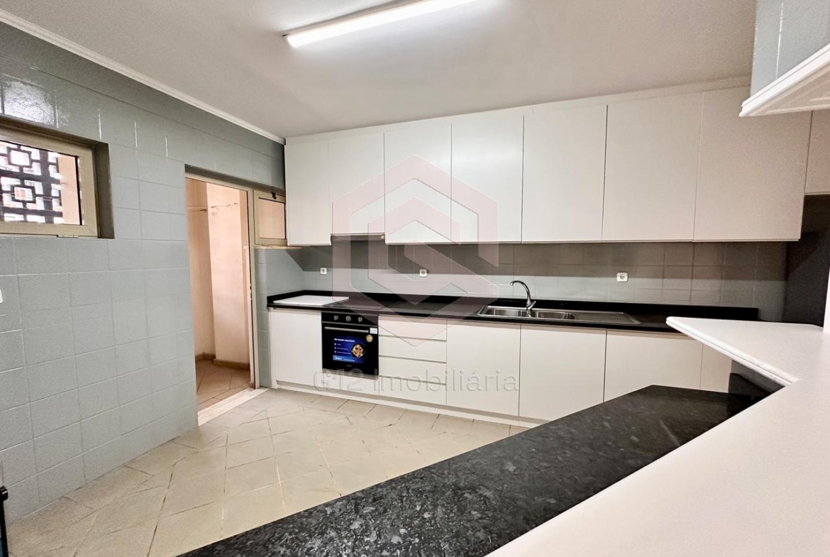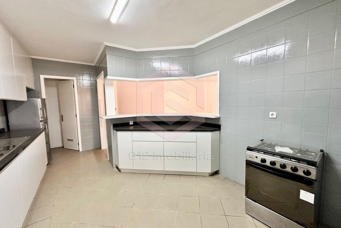 – Cozinha equipada com armários embutidos, fogão, forno elétrico, micro-ondas, máquina de lavar roupa e máquina de lavar louça