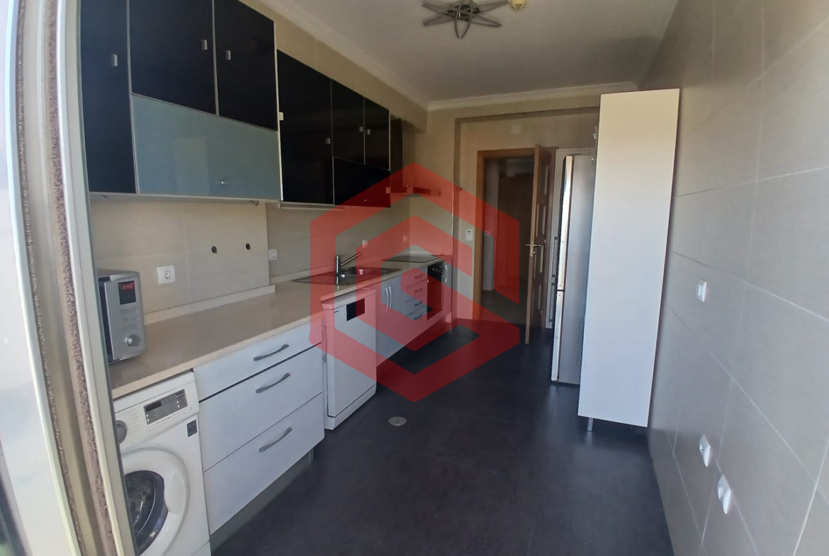 – Cozinha equipada com armários, geleira, fogão, forno, máquina de lavar roupa e máquina de lavar louça