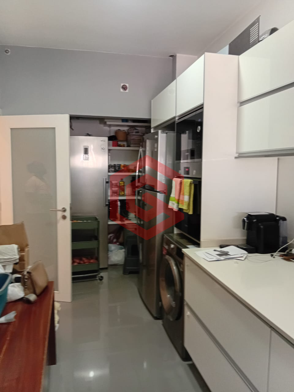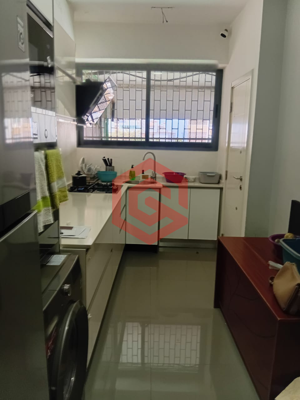 – Cozinha equipada com armários embutidos, frigorífico, forno elétrico, micro-ondas e máquina de lavar louça